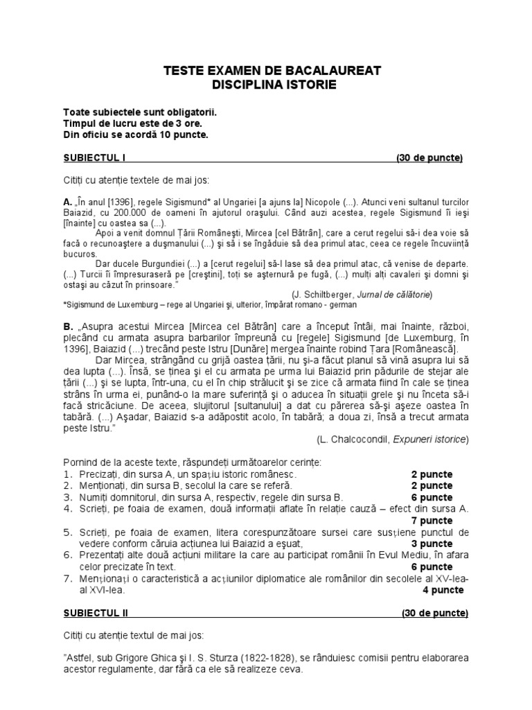 Bac subiecte istorie, bacalaureat subiecte istorie.